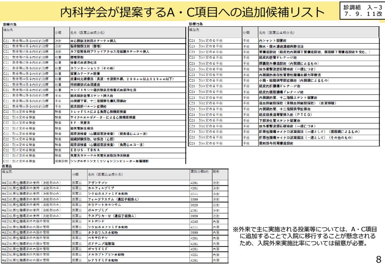 追加される具体的な薬剤や処置の項目については、内科学会からの提案ベースでほぼ固まりつつあるという印象を持っています。