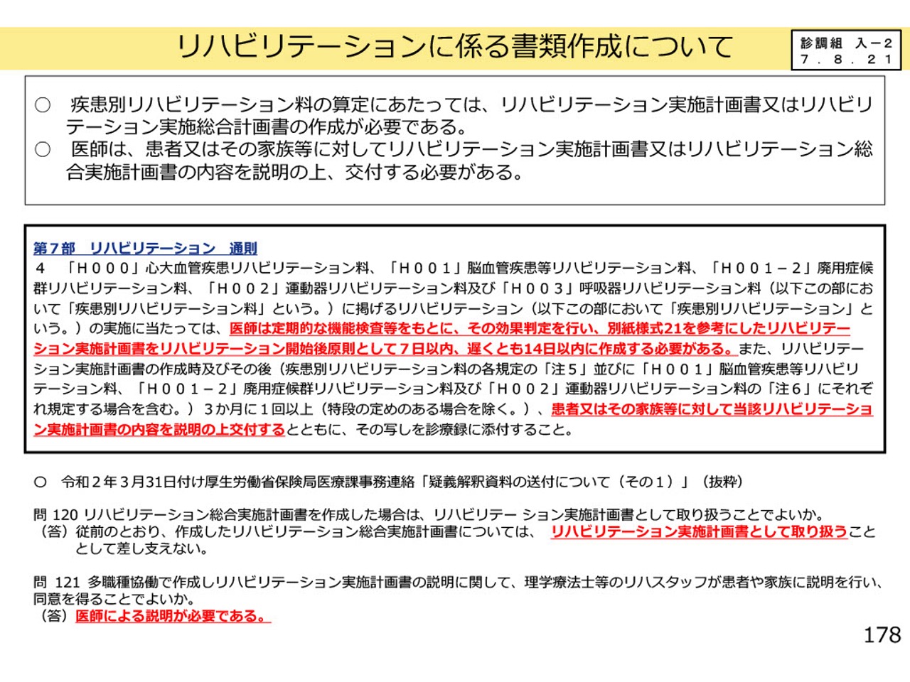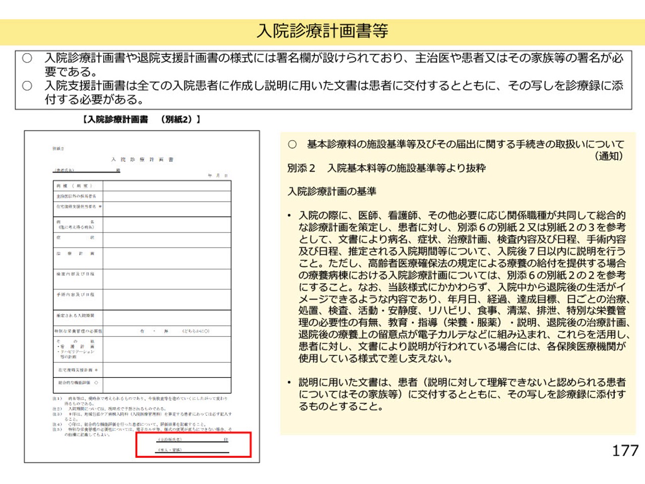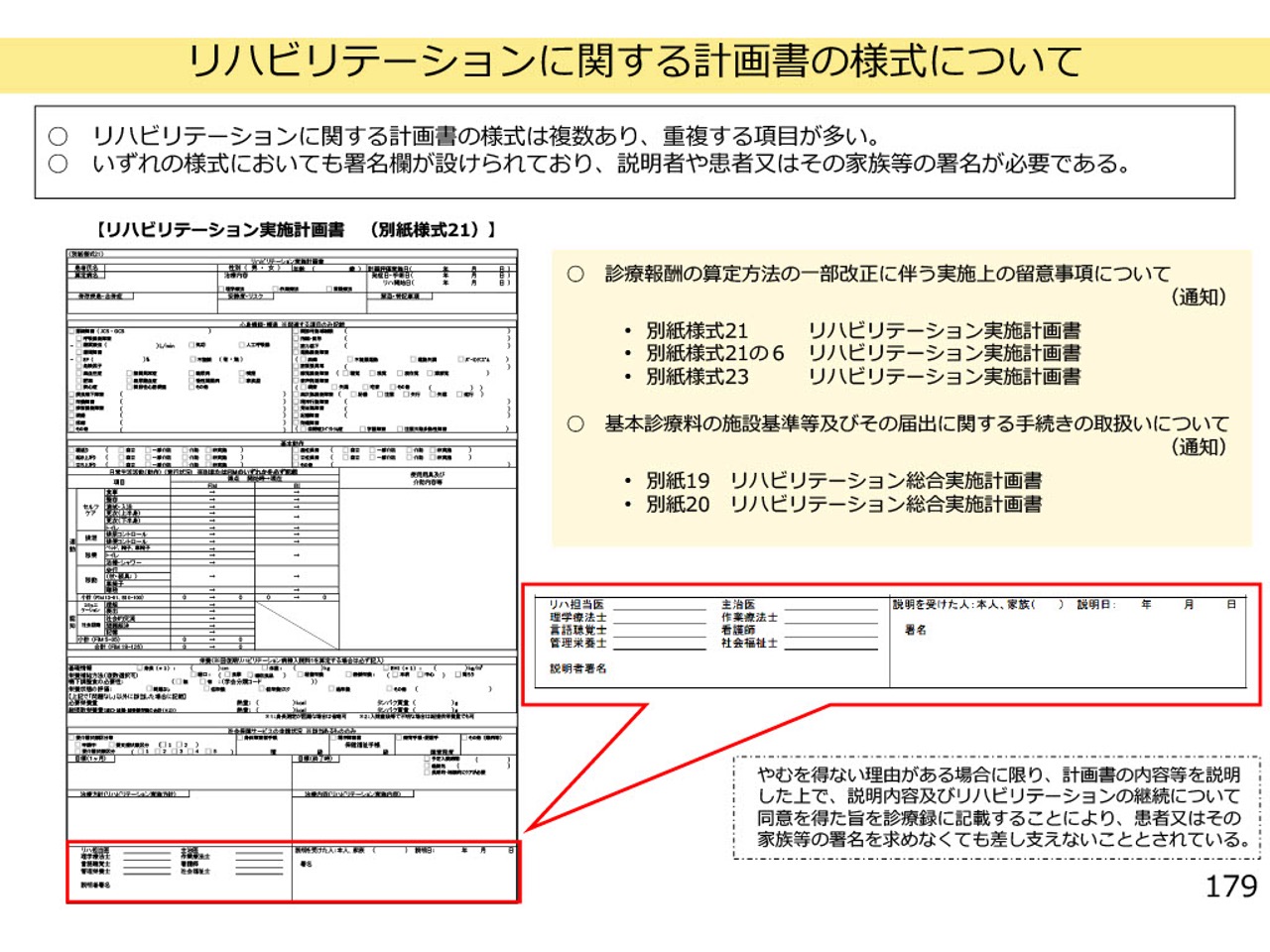 リハビリテーション実施計画書についても、医師による説明や、本人・家族からの署名が厳格に求められています。