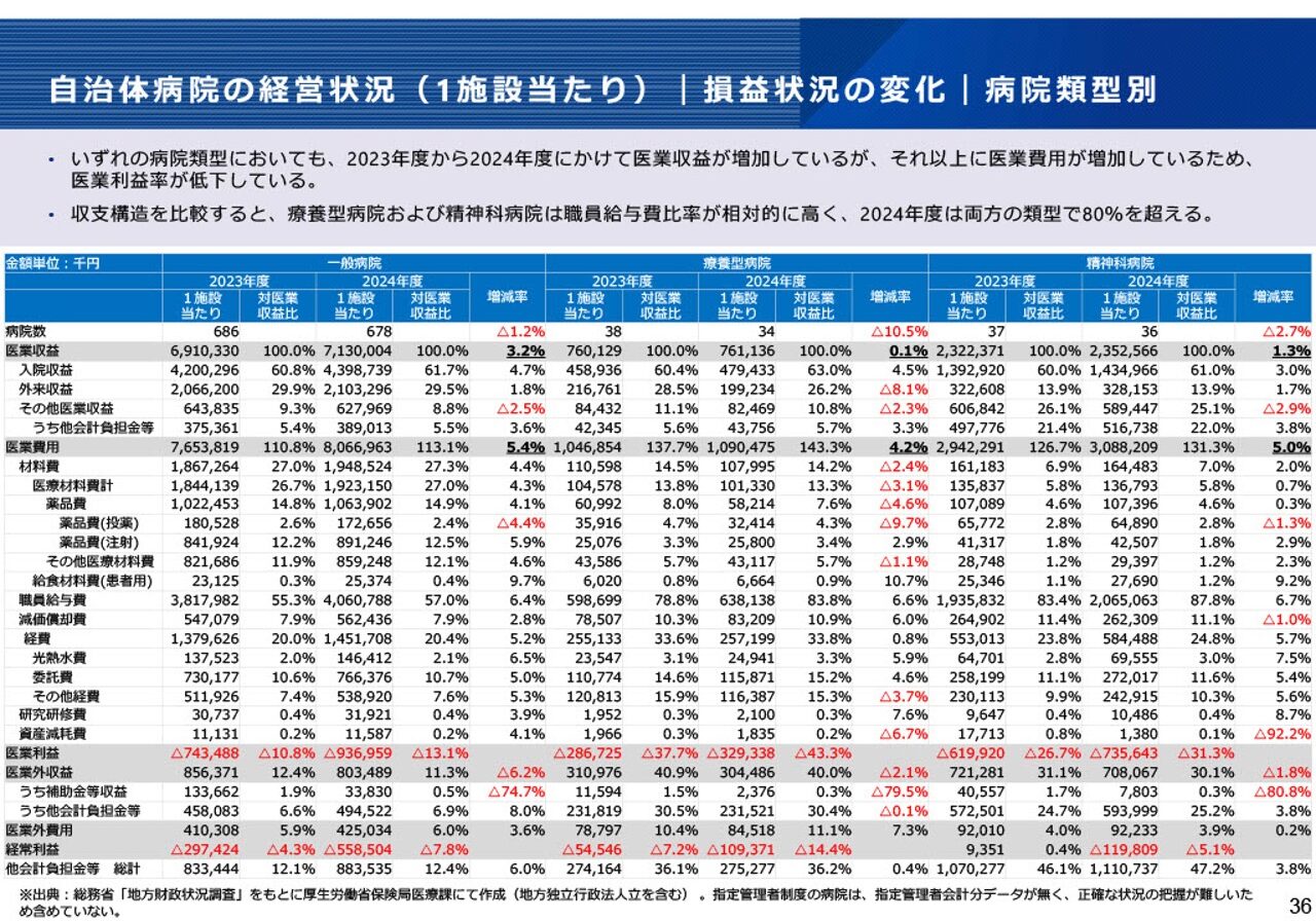 一方で、一般病院においても医業黒字を確保している自治体病院が存在しており、2023年度で7%、2024年度でも4%存在している点は、非常に注目すべき点だと感じています。