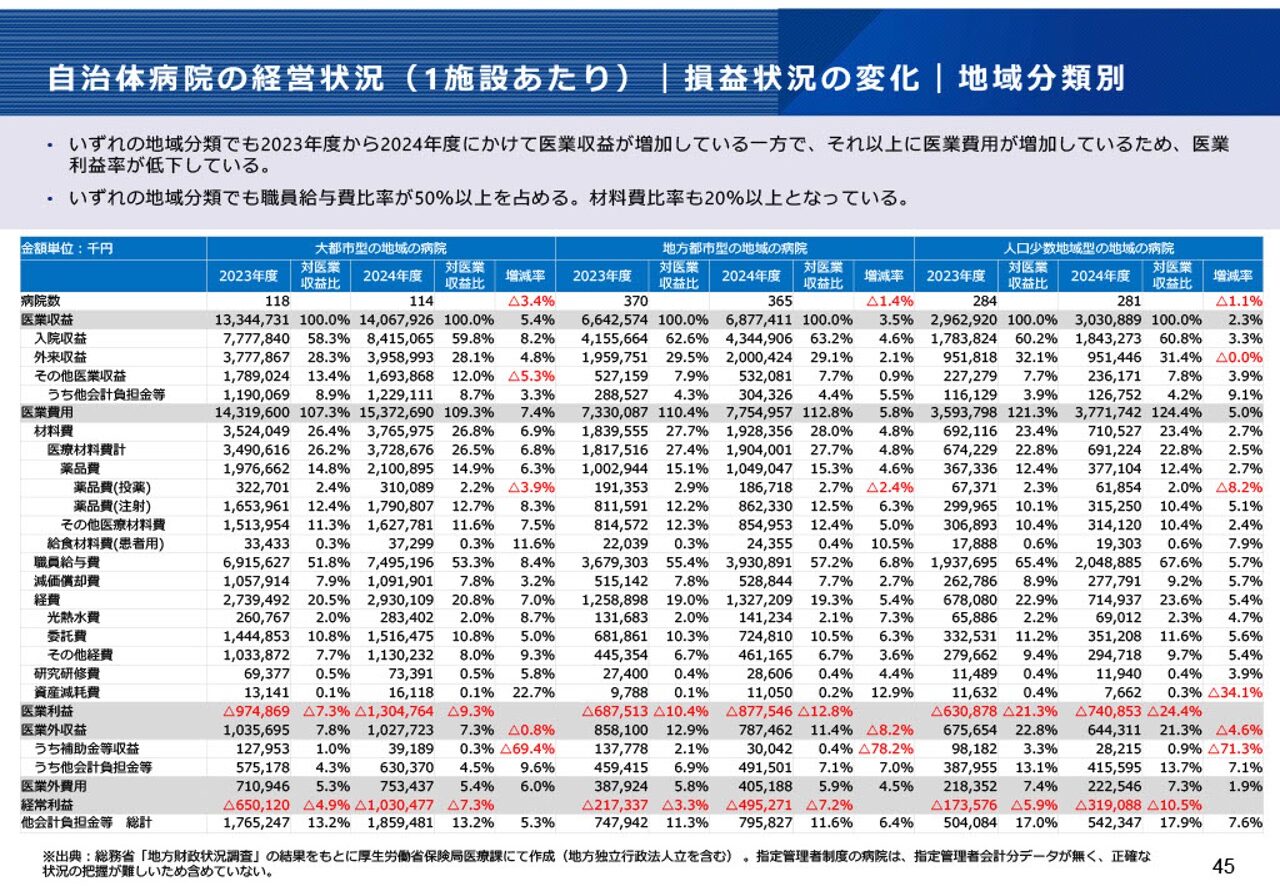 自治体病院は小児救急や産科といった不採算部門も担う必要があるため、もともと赤字が出やすい構造ではありますが、補助金が入ってもなお8割以上が赤字というのは、もはや経営努力だけで解決できる域を超えていると言わざるを得ません。