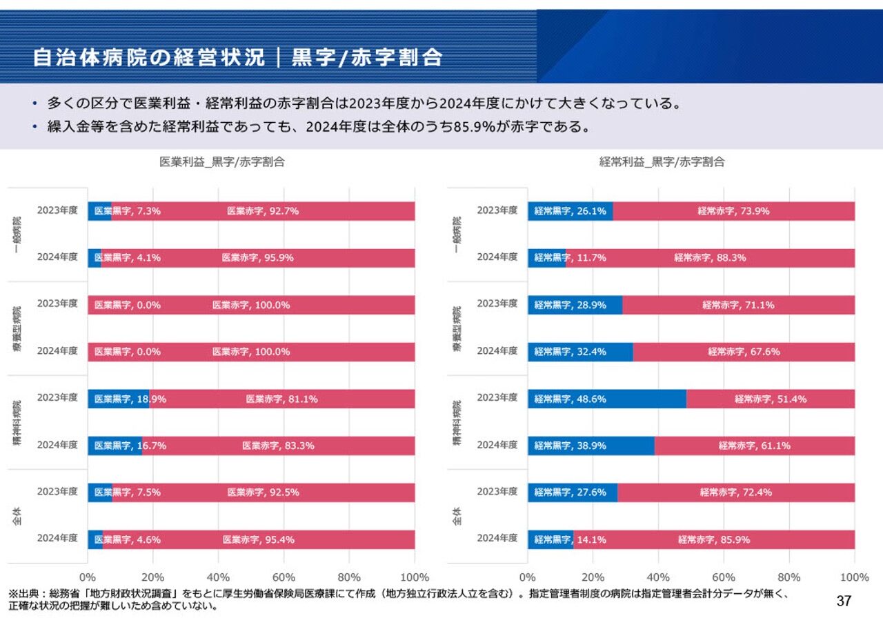 2024年度において、自治体病院の85.9%が経常赤字となっています。